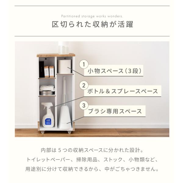 トイレ収納 スリム キャスター付き トイレラック トイレットペーパー 掃除用具 木目調 ナチュラル シンプル おしゃれ 北欧 コンパクト 省スペース 隙間収納