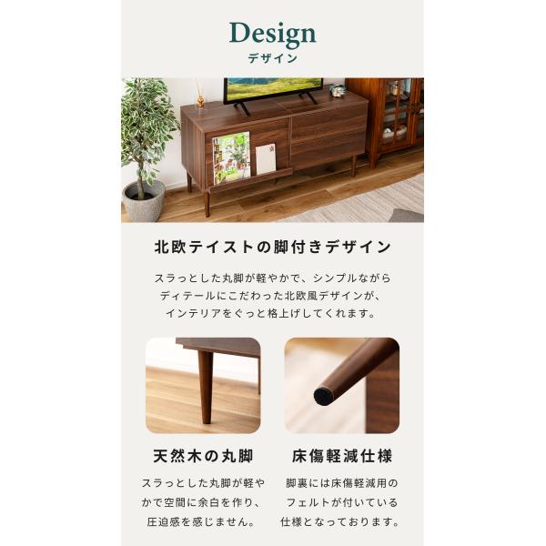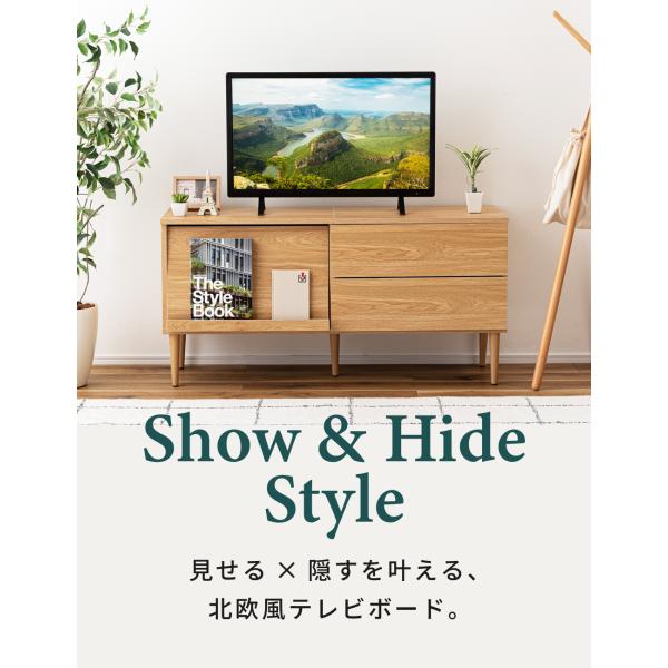 幅120cmで32〜40V型テレビに対応し、リビングの主役として存在感を放ちます。
