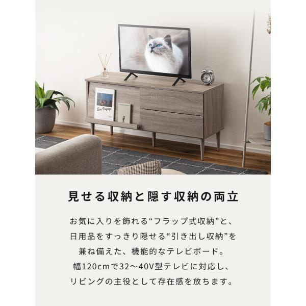 ローボード 幅120cm テレビボード テレビ台 高め 木目調 フラップ扉 高さ60cm ディスプレイ 引き出し コンパクト スリム シンプル 北欧 おしゃれ 棚 可動棚