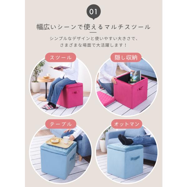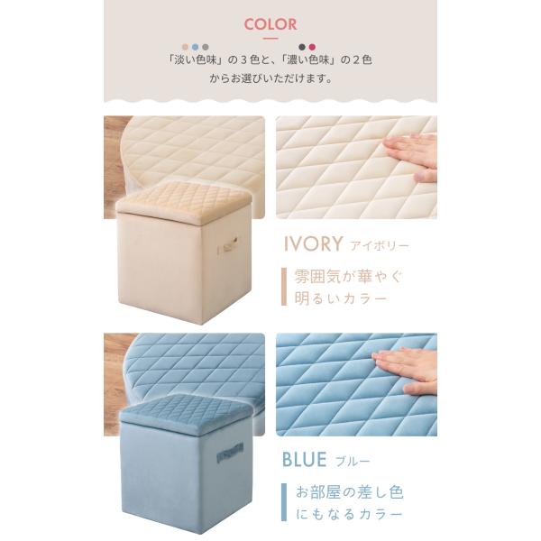 収納スツール 座れる イス かわいい 四角型 オットマン 小物収納 ベロア ガーリー チェア おもちゃ箱 ドレッサー ベンチ 足置き カラフル スクエア 四角 子ども部屋 北欧 ポイント利用