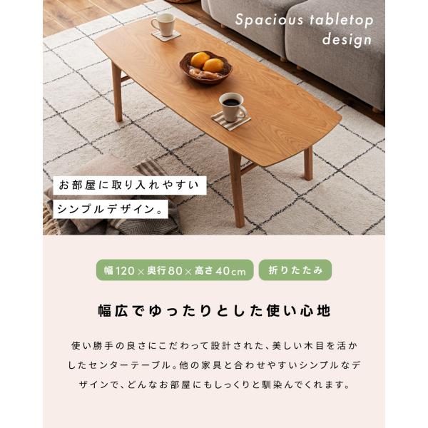 折りたたみテーブル おしゃれ 幅120cm センターテーブル ローテーブル 折り畳み 机 天然木 木製 北欧 シンプル ナチュラル 大きめ 完成品 来客用 リビング ダイニング 省スペース オーク材 白 黒 ブラウン 茶色 木目 ブラック ホワイト ポイント利用