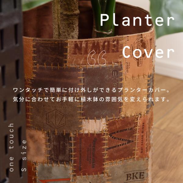 プランターカバー 鉢 植木鉢 鉢植え カバー 茶 ブラウン パッチワーク おしゃれ シンプル ワンタッチ 簡単 手軽 プランター 園芸 園芸用品 植物 コットン 綿 革 本革 ポイント利用