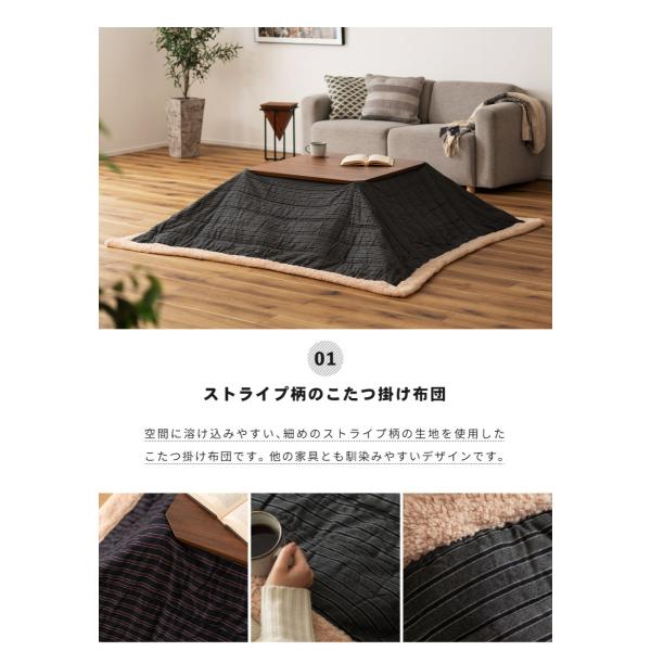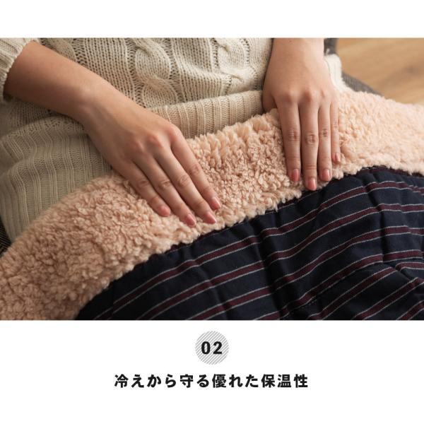 こたつ布団 正方形 190×190 おしゃれ こたつ掛け布団 布団 薄掛け 薄掛布団 シープボア ボア 防寒 ストライプ ポイント利用
