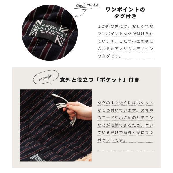 こたつ布団 正方形 190×190 おしゃれ シープボア ボア 布団 薄掛布団 こたつ掛け布団 薄掛け 防寒 ストライプ グレー ネイビー シンプル ケース 収納バッグ