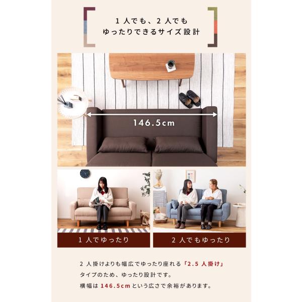 ソファー 2人掛け コンパクト 2.5人掛け 幅146cm クッション付き ハイバック ロータイプ 脚取り外し 北欧 おしゃれ ゆったり ソファ ファブリック ベージュ