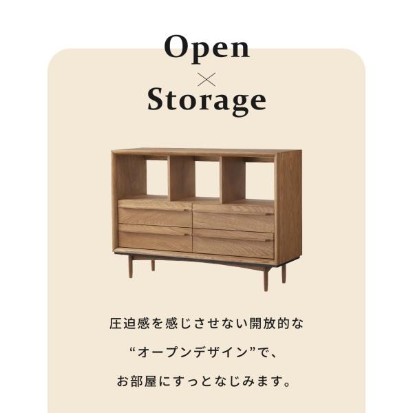 チェスト 2段 おしゃれ 木製 北欧 ロー 天然木 収納 引き出し オーク材 シェルフ 間仕切り サイドボード 棚 タンス 衣類収納 ワイド 本棚 ナチュラル ブラウン