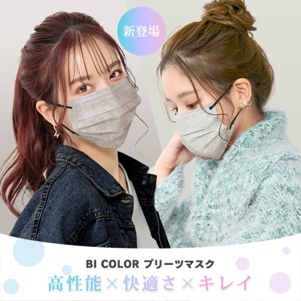 マスク 不織布 立体 不織布マスク 50枚 おしゃれ 立体マスク バイカラー 不織布カラーマスク カラーマスク 使い捨てマスク 血色マスク プリーツマスク