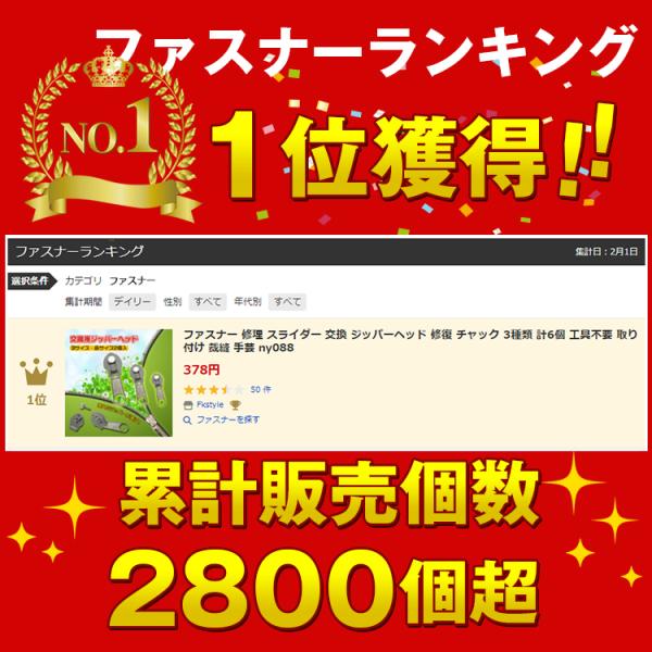 ファスナー 修理 スライダー 交換 ジッパーヘッド 修復 チャック 3種類 計6個 工具不要 取り付け 裁縫 手芸 ny088