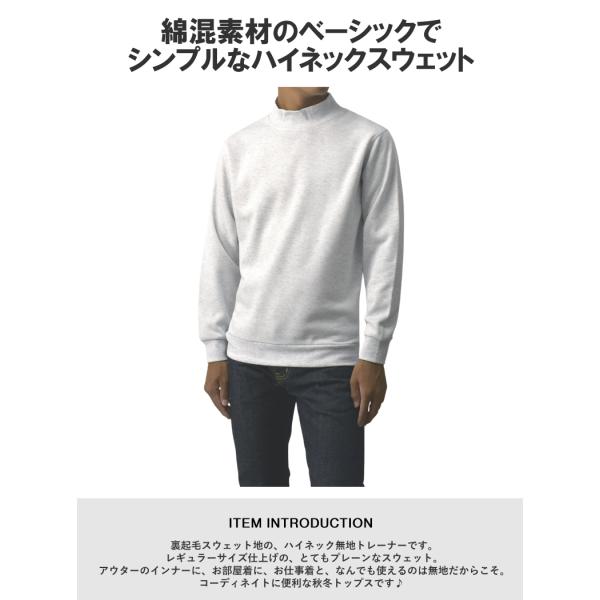 綿混素材のベーシックでシンプルなハイネックスウェットです。