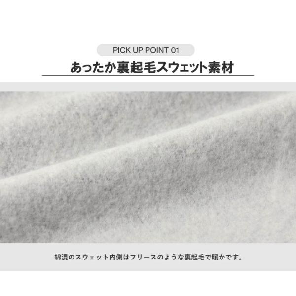 綿混のスウェット内側はフリースのような裏起毛で暖か、しかも軽量。まさに軽暖!