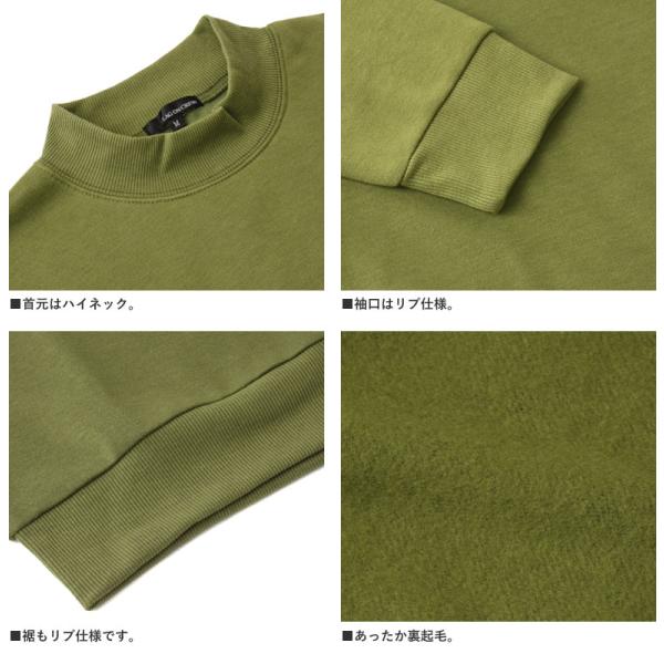 裏起毛スウェット地の、ハイネック無地トレーナーです。