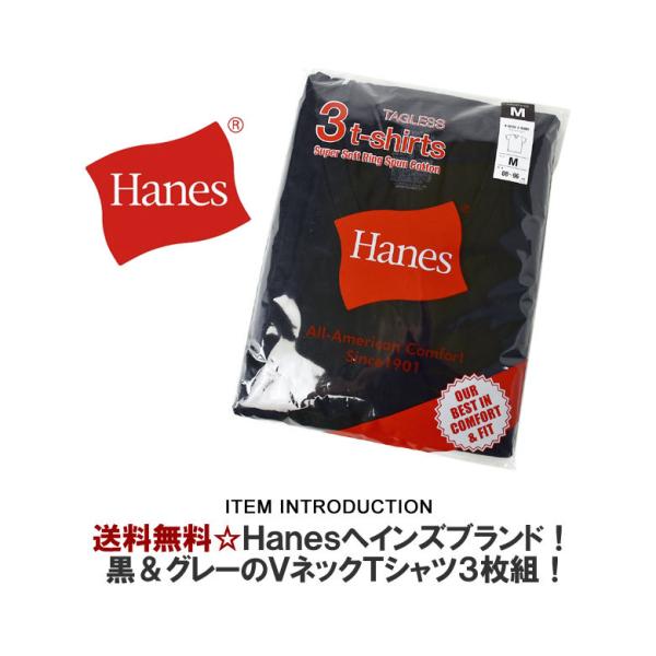 Hanesヘインズブランド!黒&グレーのVネックTシャツ3枚組!