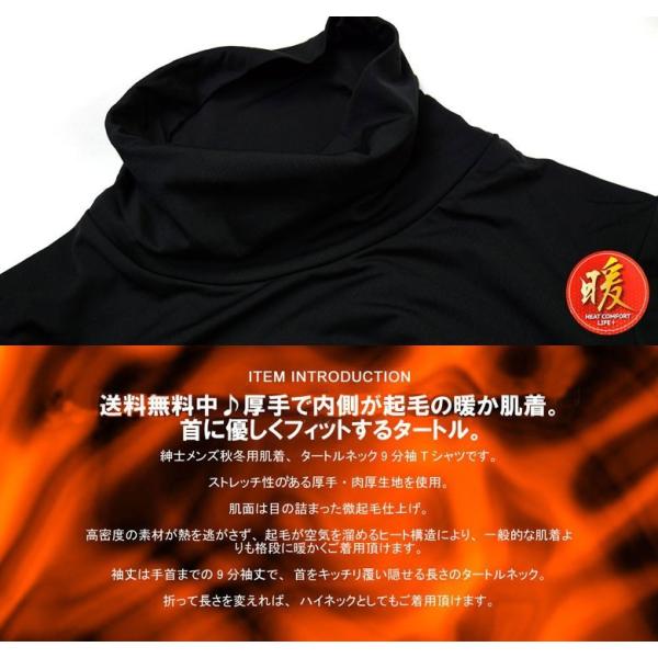 保温 インナー メンズ 肌着 タートルネック 長袖 9分袖 アンダーウェア 内側起毛 Tシャツ 暖ヒート トップス E3K セール【パケ1】 爆買