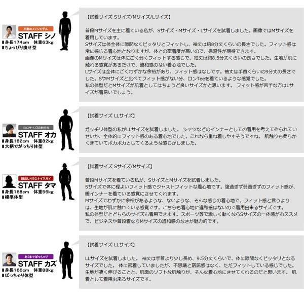 高密度の素材が熱を逃がさず、起毛が空気を溜めるヒート構造により、一般的な肌着よりも格段に暖かくご着用頂けます。