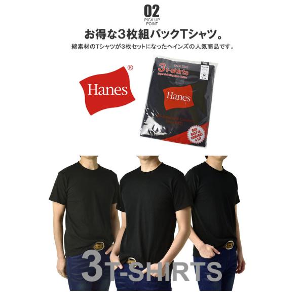 ブランド「Hanes・ヘインズ」のクルーネック半袖Tシャツが3枚入った商品です。