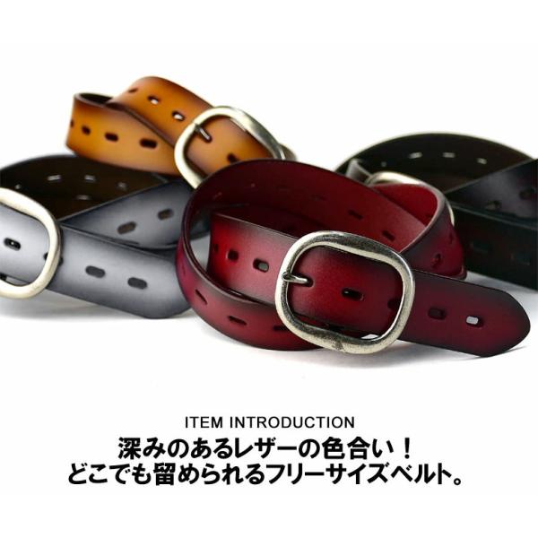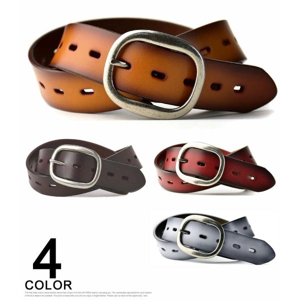 ベルト メンズ レザーベルト バックルオーバル型 本革 ビンテージ染色 センターラインホール フリーサイズ ファッション小物 セール Z2A 爆買