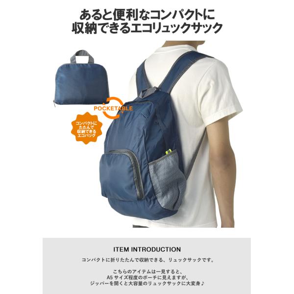収納リュックサック ポケッタブル エコバッグ コンパクト バッグ 軽量 日常 防災 リフレクター メッシュポケット ジップポケット 通勤 通学 Z3W セール【パケ2】