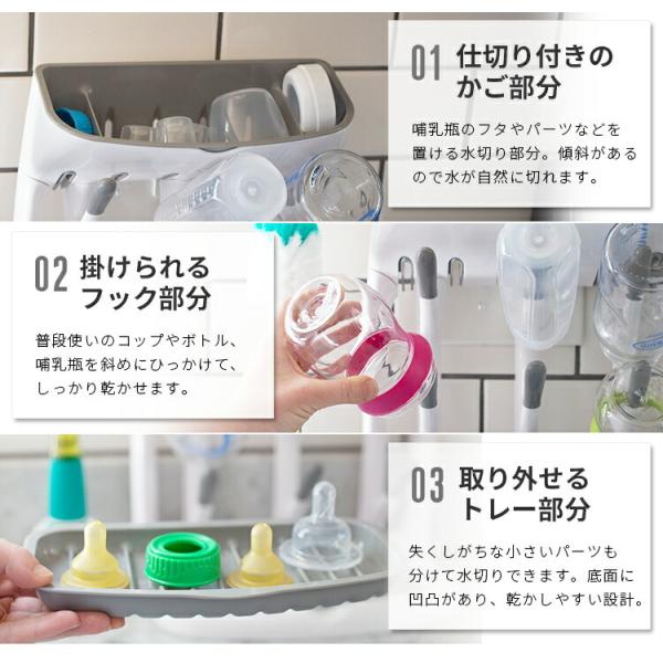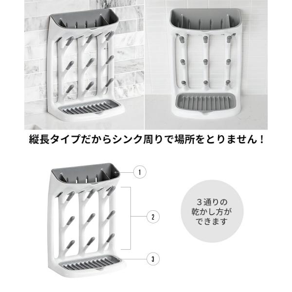 赤ちゃんの哺乳瓶やマグなど乾かせるスリムな水切りラック。