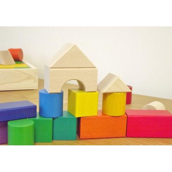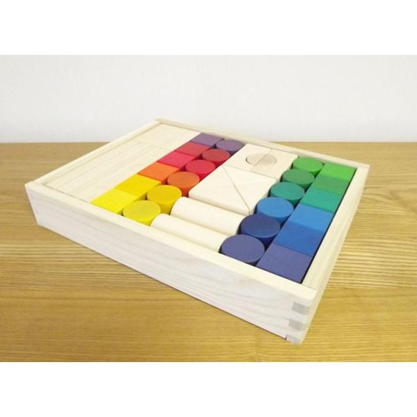 色彩豊かな12色の積み木。無地の積み木と合わせ40ピース。