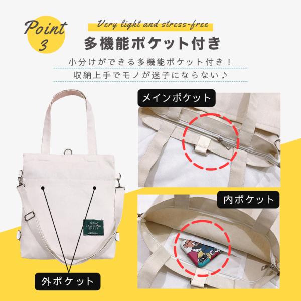 トートバッグ 帆布 a4 大きめ 3Way 大容量 キャンバス レディース 肩掛け ファスナー 軽量 2Way メンズ おしゃれ