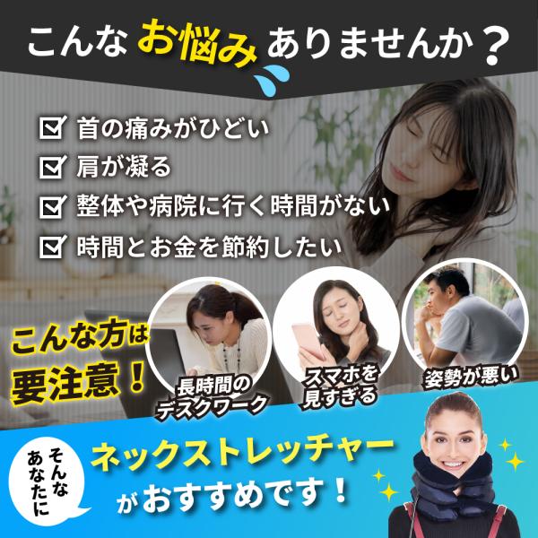 ネックストレッチャー 牽引 肩こり 首こり 首筋 肩こり解消グッズ クビ ストレッチ エアー式 手動 首ヘルニア スマホ首 ストレートネック