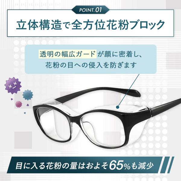 花粉メガネ 花粉対策 メガネ ゴーグル 花粉症対策 グッズ 花粉用 花粉 メガネ ゴーグル 防塵 UVカット ブルーライトカット