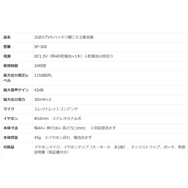 集音器 会話もTVもハッキリ聞こえる ANABAS 太知 ステレオカナル式 手のひらサイズ かんたん操作 ネックストラップ ポーチ付 乾電池式 ホワイト SF-300 ◆宅