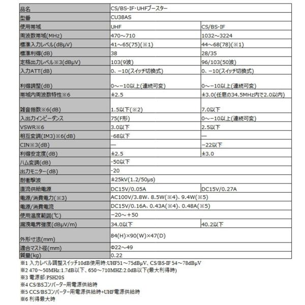 CS/BS-IF UHFブースター UHF38dB BS/CS 28/35dB 屋外用 DXアンテナ 4K 8K 3224MHz対応 CU43AS後継 利得38dBモデル CU38AS ◆宅