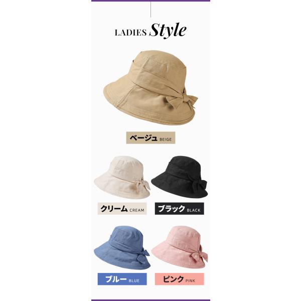 - 幅広いつばで360°紫外線から顔周りをしっかり守る。