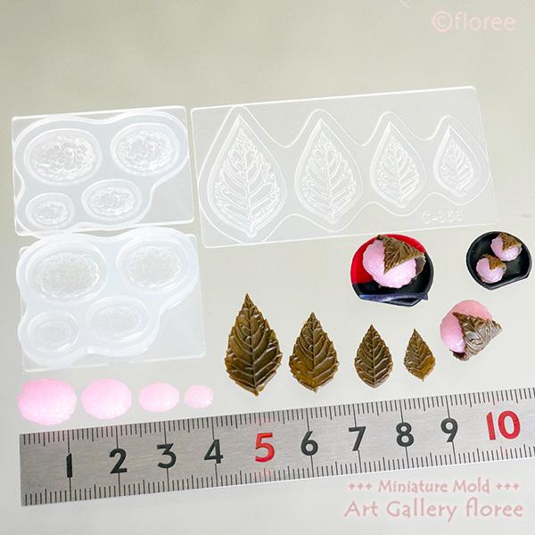 Miniature sweets 桜餅(道明寺)和菓子シリーズ(粘土用) シリコンモールド ミニチュア和菓子型 さくら餅型 floree 粘土型 樹脂粘土 フローレ 日本製