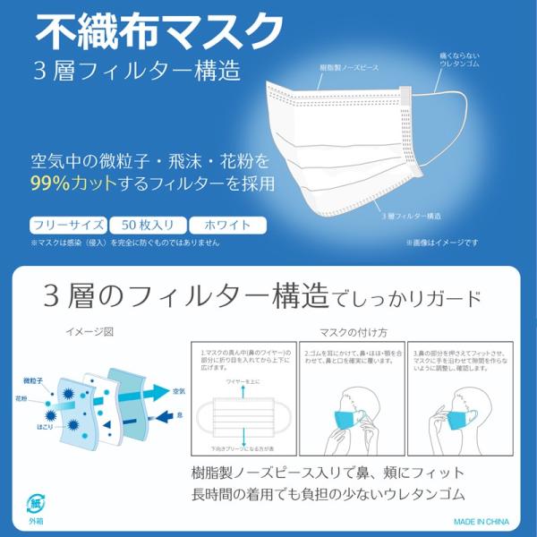不織布 マスク 50枚入り 箱付き フリーサイズ 国内配送 3営業日前後で出荷 / ランドセル ラッピング お店 フロロ