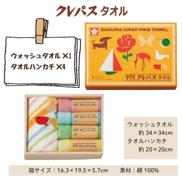 クレパス タオルギフト ウォッシュタオル 1枚・タオルハンカチ 4枚 サクラクレパスタオル 誕生日 入園祝い 出産祝い プレゼント プチギフト 幼稚園 保育園