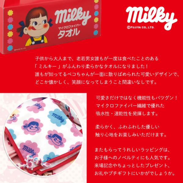 ミルキー タオルギフト フェイスタオル 1枚 やわらかマイクロファイバータオル 誕生日 入園祝い 出産祝い プレゼント プチギフト 幼稚園 保育園