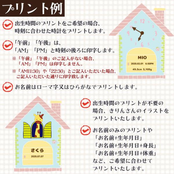 〇お子様のお名前・生年月日・出生時間(時計)・身長・体重をプリントすることが可能です。