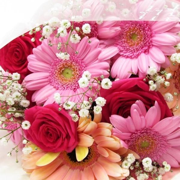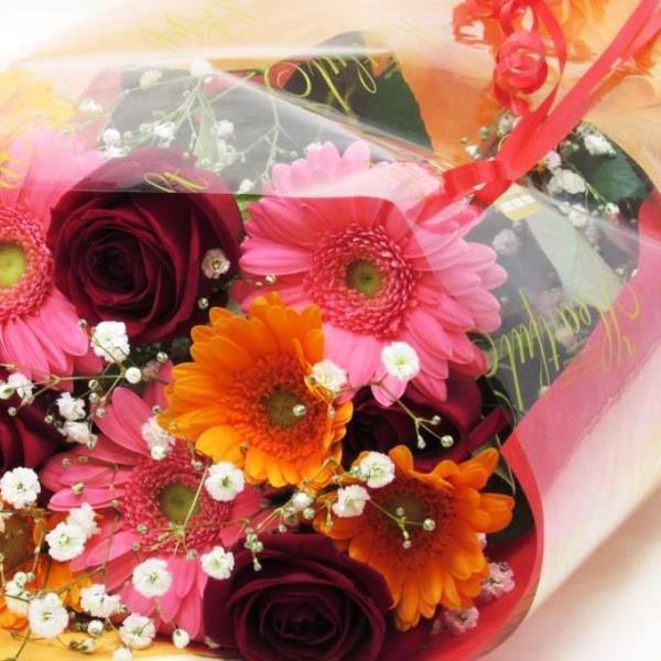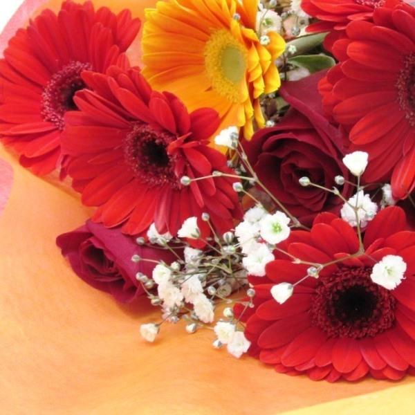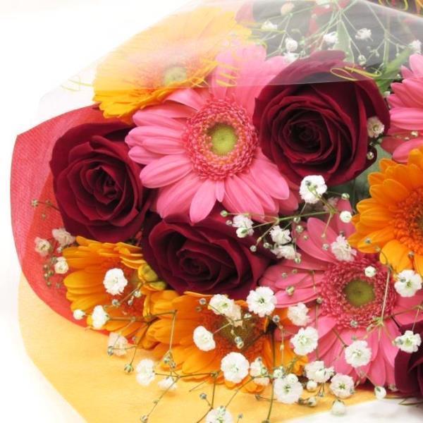 花 送料無料 人気の薔薇とガーベラの花束 お得なおまかせ!