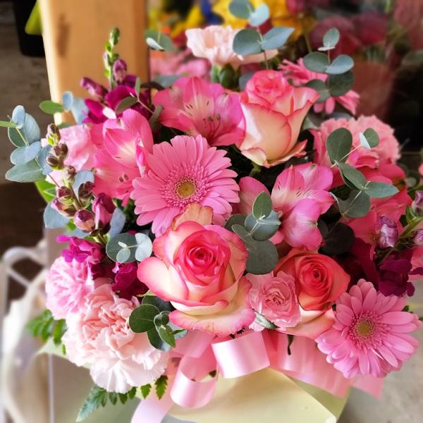 送料無料 季節のお花たっぷりおまかせ ピンク系