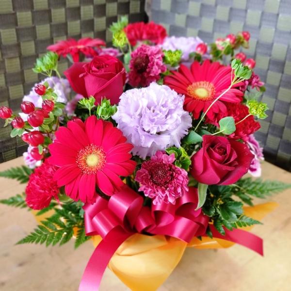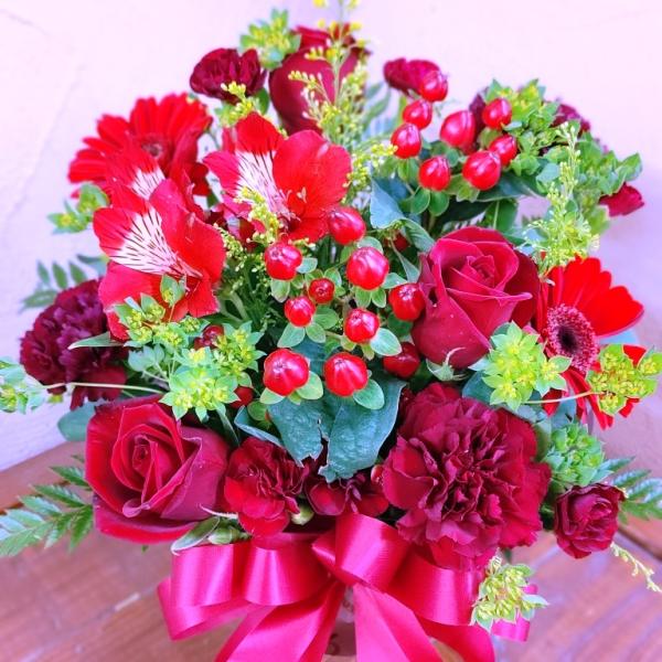 赤いワンサイドフラワーアレンジメント そのまま飾れる 送料無料 誕生日 お祝い 記念日 送別