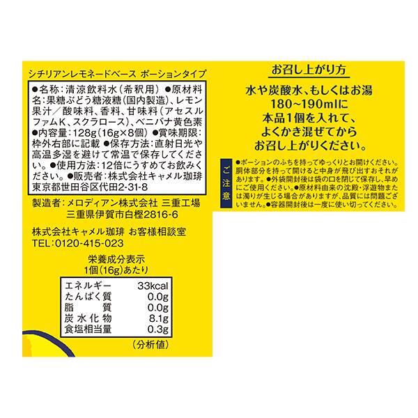カルディ KALDI シチリアン レモネードベース ポーション 8個 個包装 小分け シチリア産レモン果汁 炭酸 水 小分け レモン レモネード レモンサワー