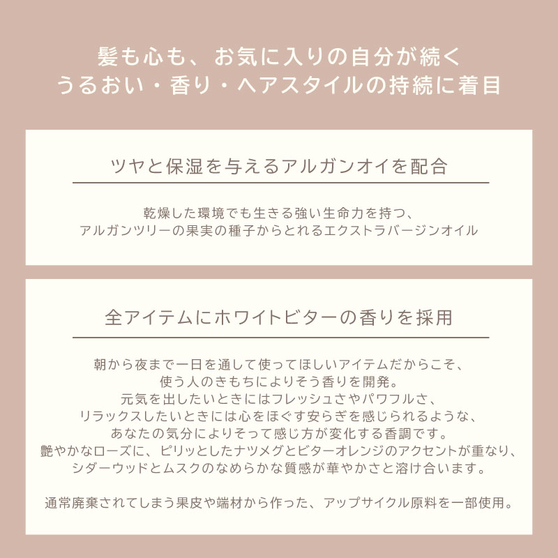 雨の日でも一日中広がらない耐湿処方で、固めず自然なスタイリングをかなえます。