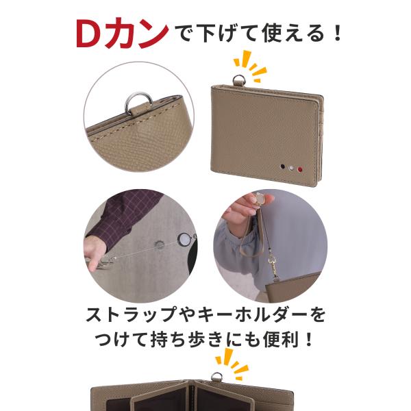 パスケース 定期入れ メンズ Dカン付き 9枚収納 免許証入れ 本革 二つ折り ICカード2枚 薄型 エラー防止 収納 社員証 学生 社会人 通学 通勤 レディース
