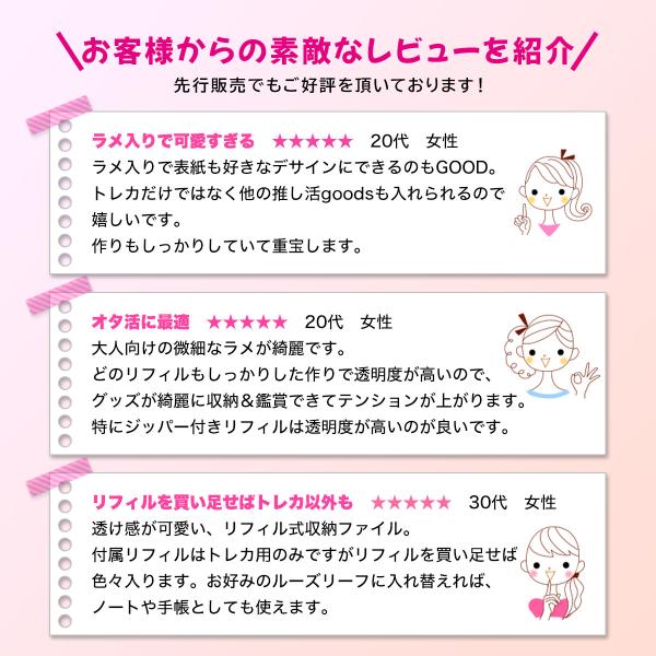 ・推しのトレカが鮮明に見えるので、鑑賞しながら保管できます。リフィル10枚付きで、手元に届いた瞬間からコレクションを整理できるのが魅力です。