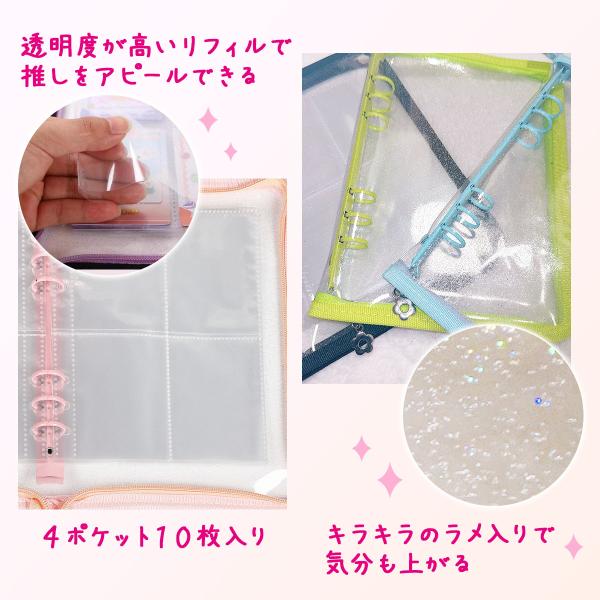 推し活 トレカファイル A5 大容量収納 リフィル10枚付き ファスナー付き クリアケース 持ち運びやすい キラキラ カードケース コレクション整理