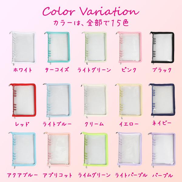 ホワイト、ターコイズ、ライトグリーン、ピンク、ブラック、レッド、ライトブルー、クリーム、イエロー、ネイビー、アクアブルー、アプリコット、ライムグリーン、ライトパープル、パープル