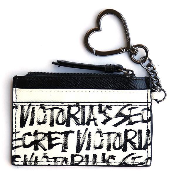 ヴィクトリアシークレット キーホルダー カードケース Victoria's Secret キーリング IDケース ブラックホワイト