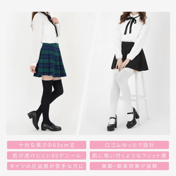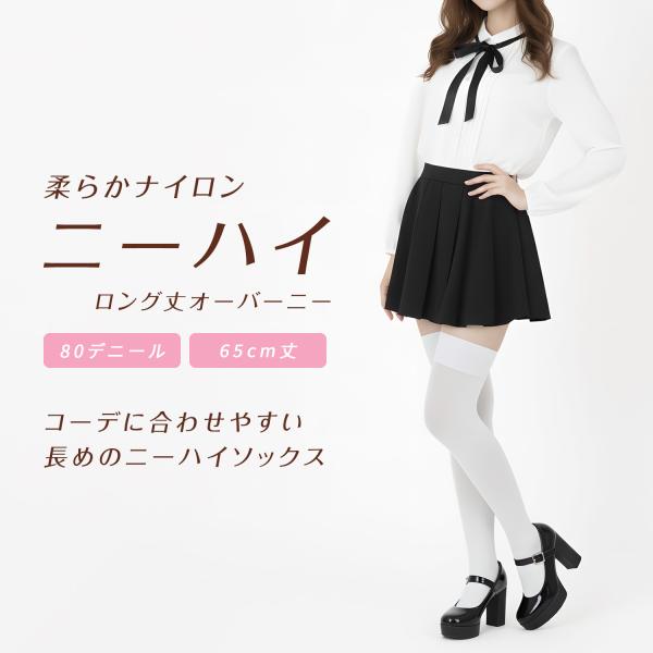 65cmロング丈 柔らかナイロン ニーハイ オーバーニーソックス 80デニール