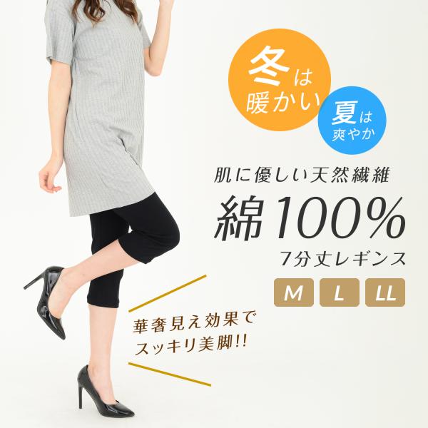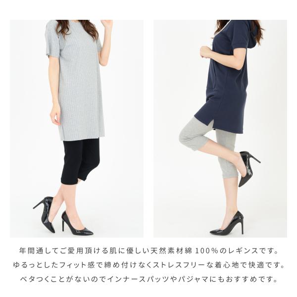 肌に優しい 綿100% 7分丈 コットン レギンス スパッツ 無地