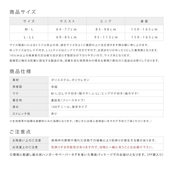 着用した瞬間からいきなりあたたかい 160デニール 無地の裏起毛レギンス(スパッツ)です。