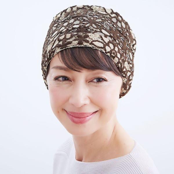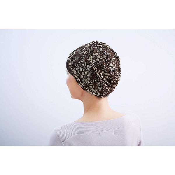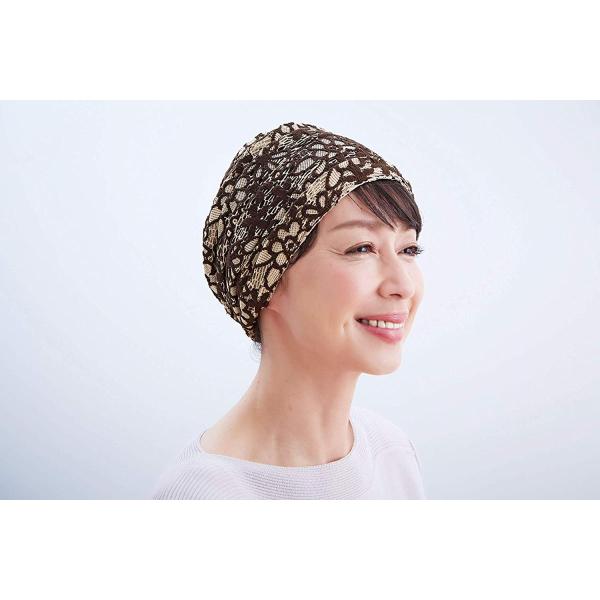 ボリュームレースヘアキャップ すべりどめ付 ベージュ&ブラウン(コジット)帽子 シニア 白髪隠し