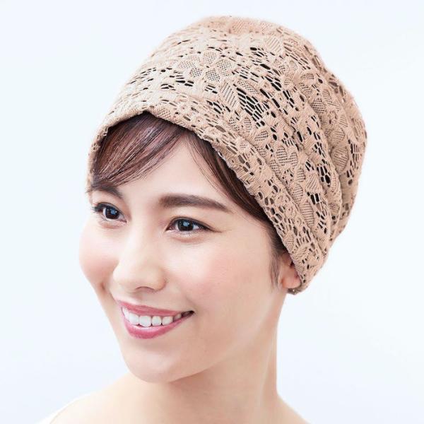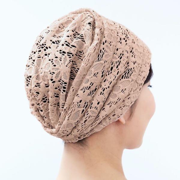 ボリュームレースヘアキャップ すべりどめ付 ピンク コジット 帽子 シニア 白髪隠し 送料無料 送料込み 寝ぐせ 薄げ レース キャップ おしゃれ