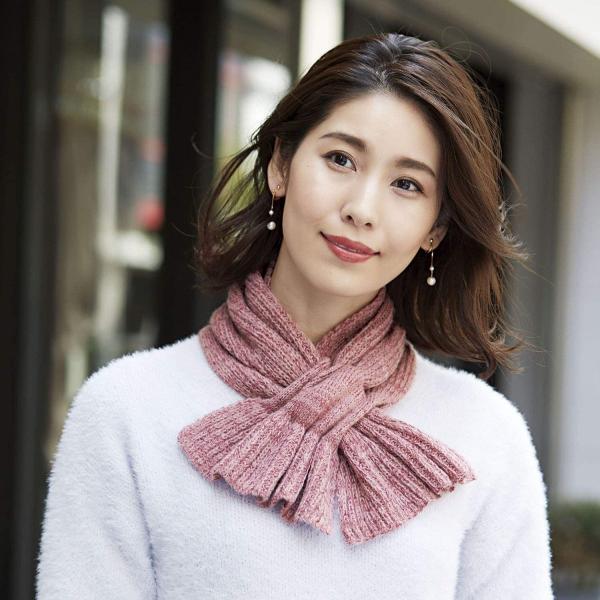 通すだけ華やかニットマフラー ローズピンク(コジット)マフラー ストール レディース ニット 防寒 吸湿発熱糸